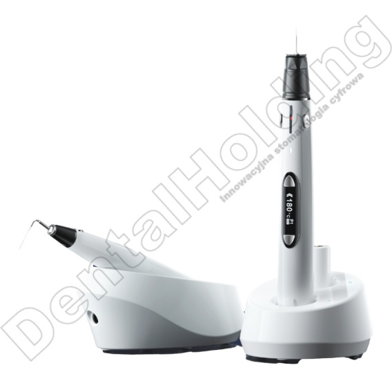 Bezprzewodowy, mobilny zestaw do wypełniania kanałów ciekłą gutaperką: gorący plugger i obturator.